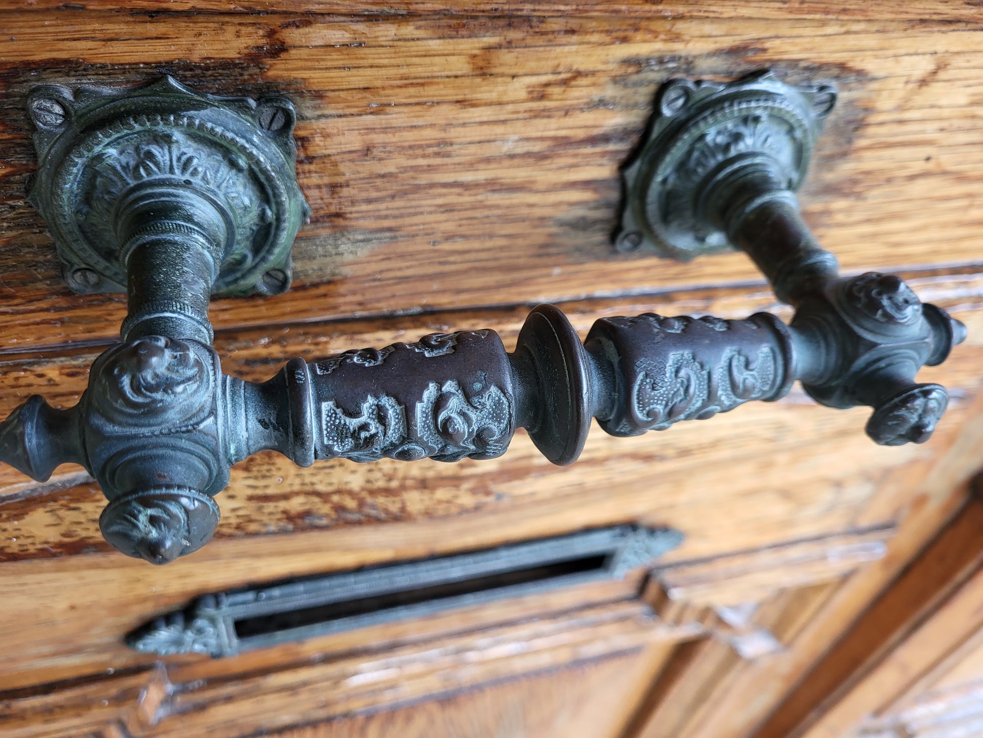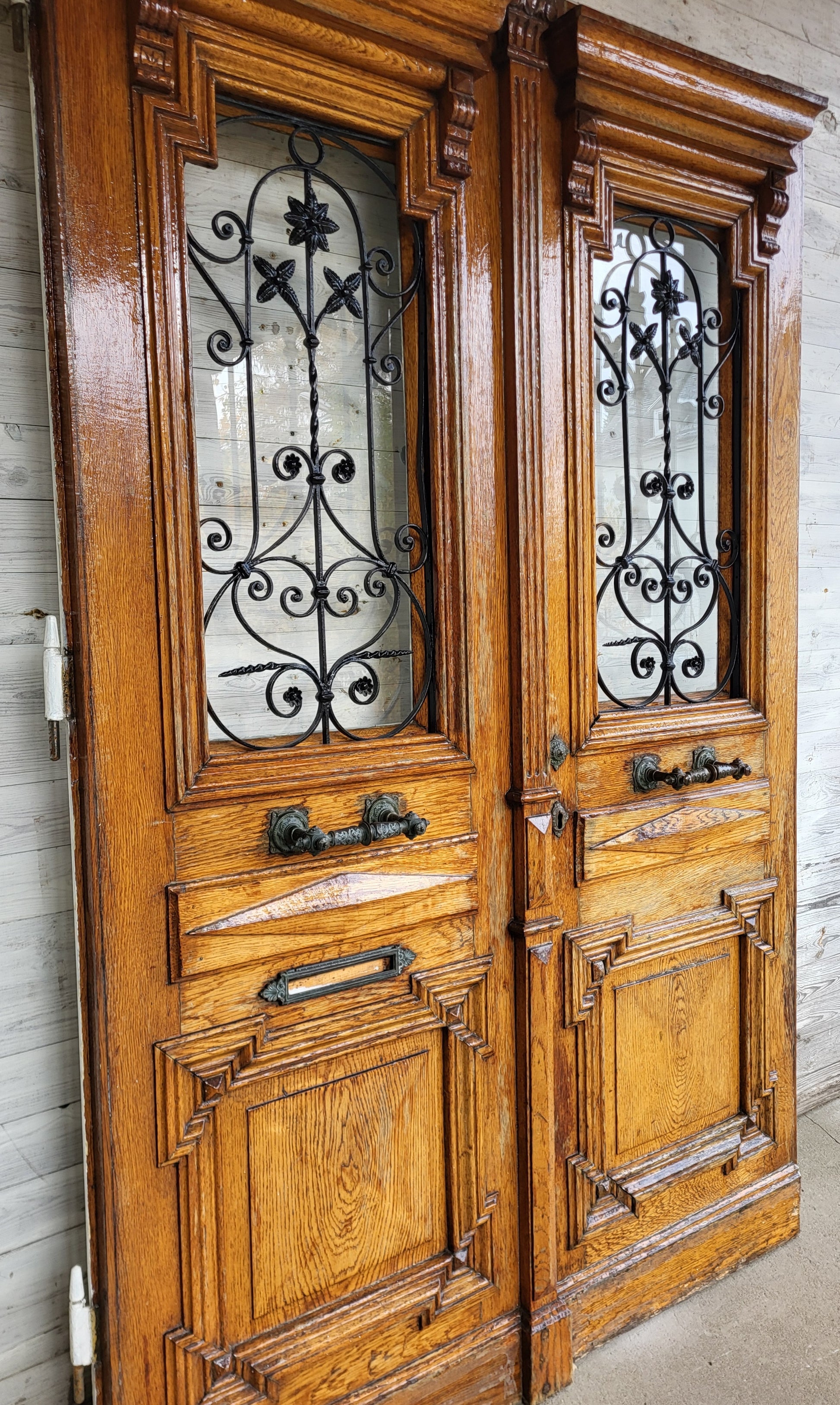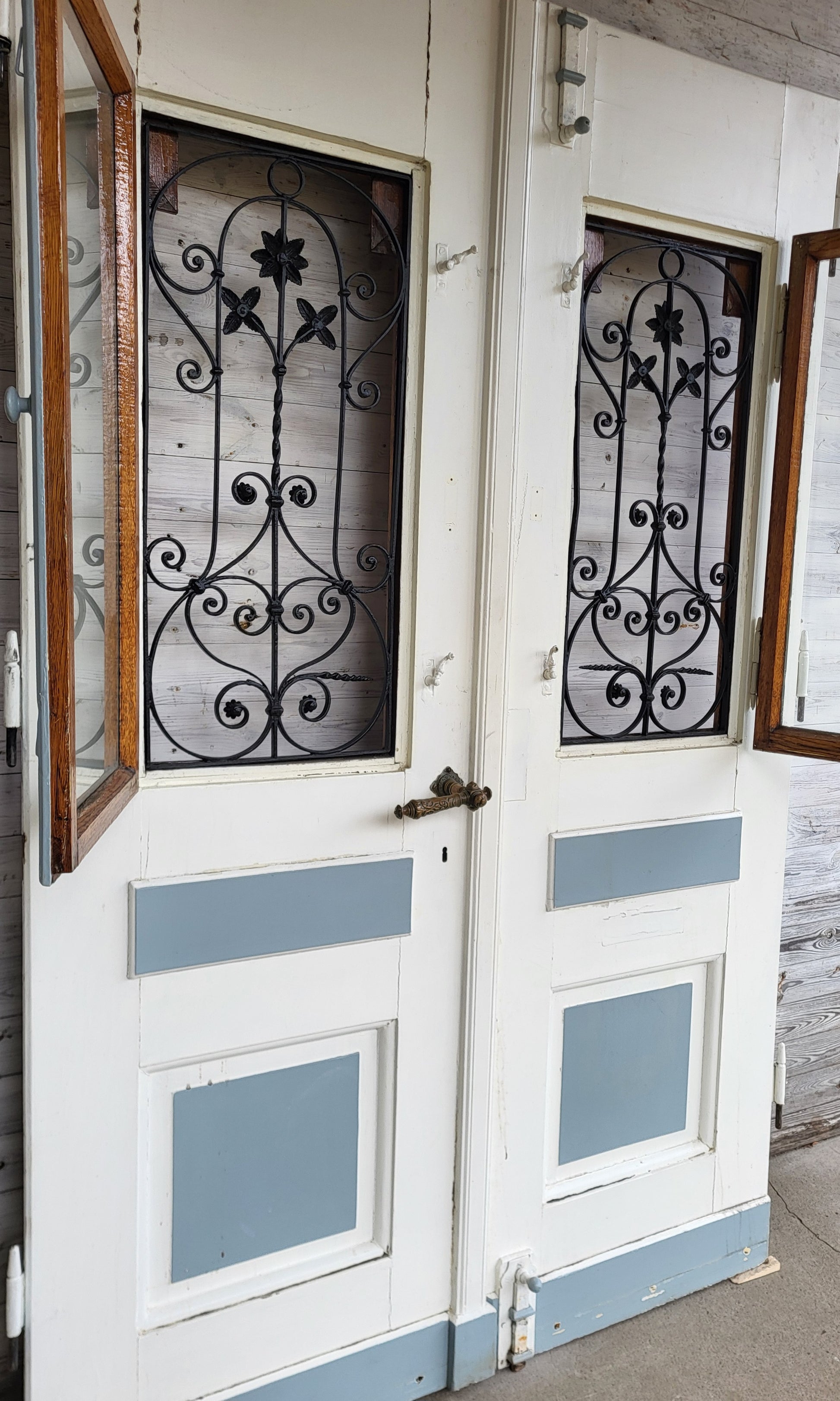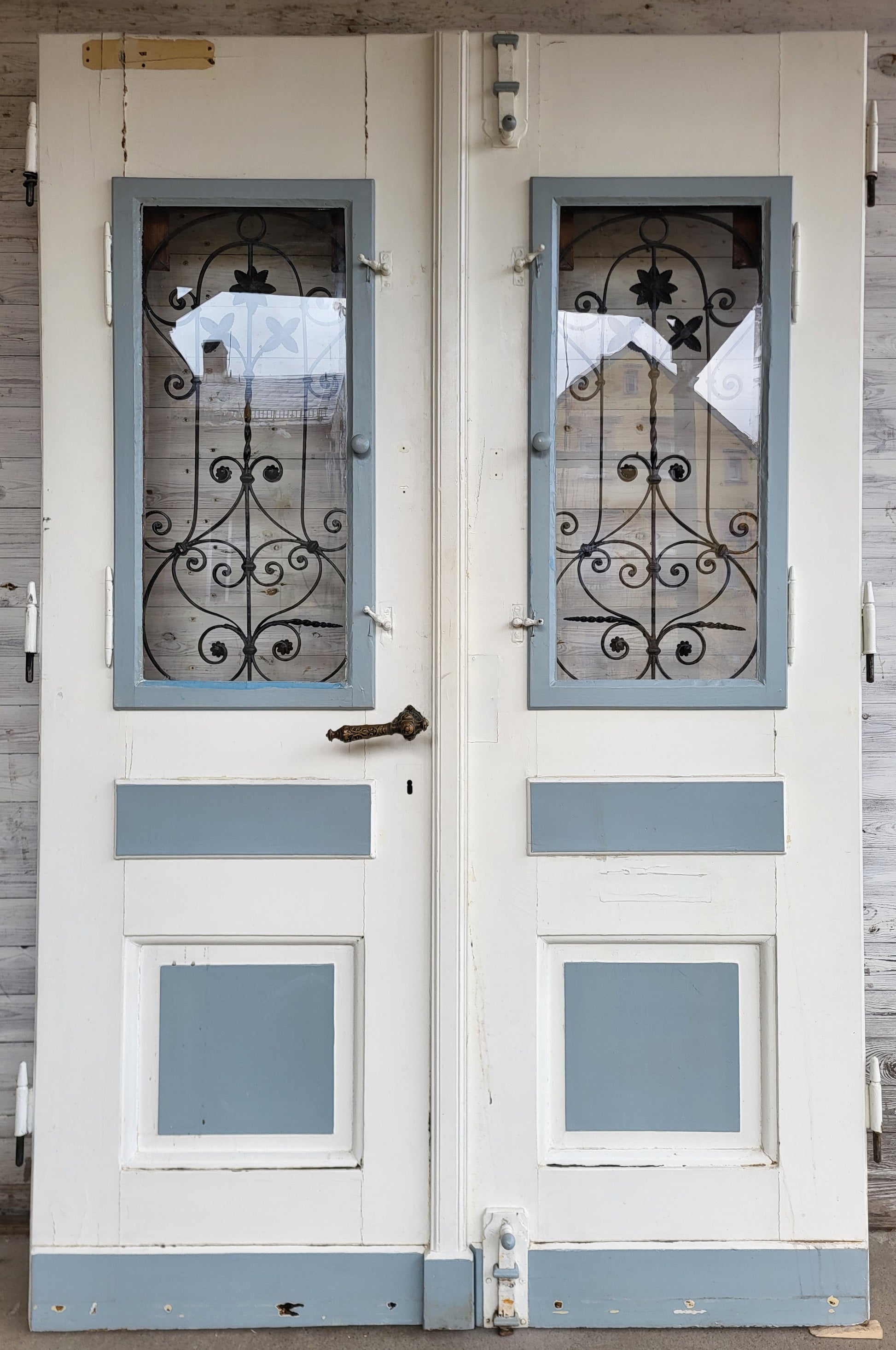 -sehr massive Türflügel in einem richtig guten Zustand, -alles orig. und komplett erhalten, -lediglich die Oberfläche wäre neu zu gestalten