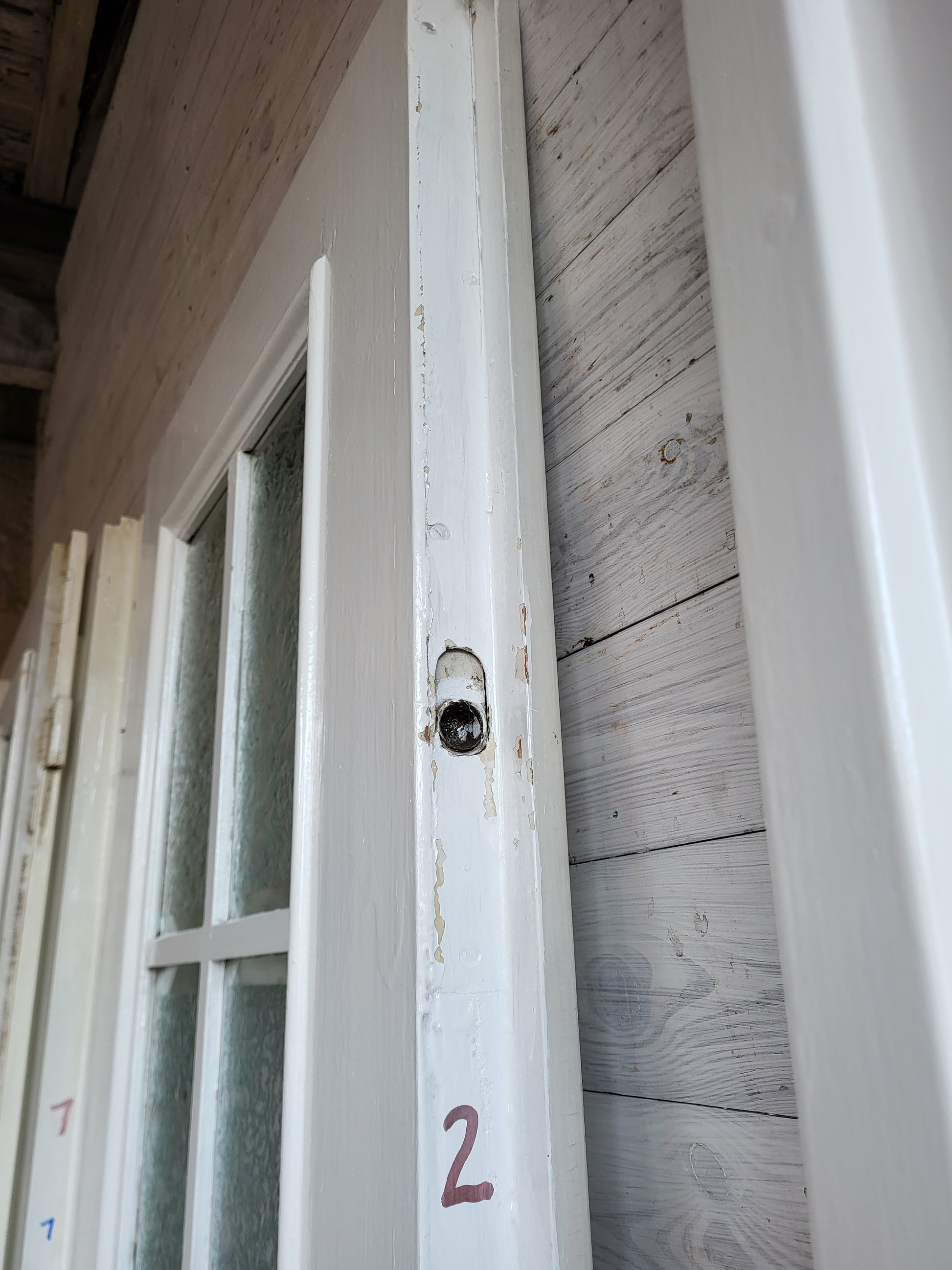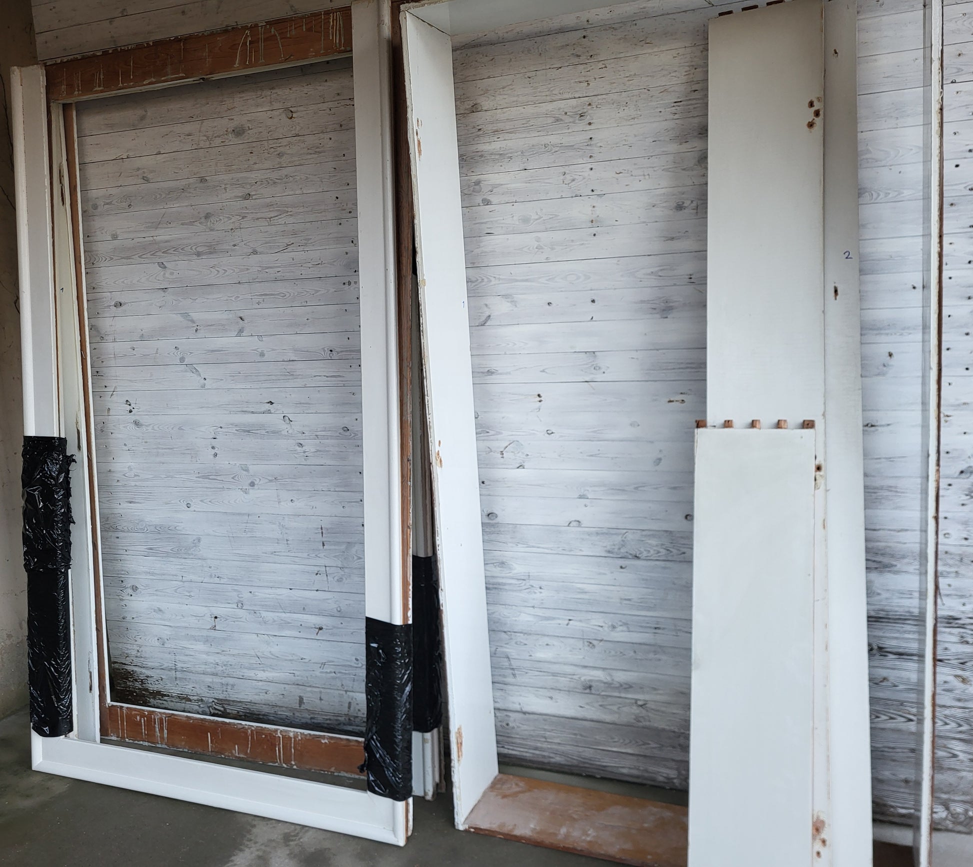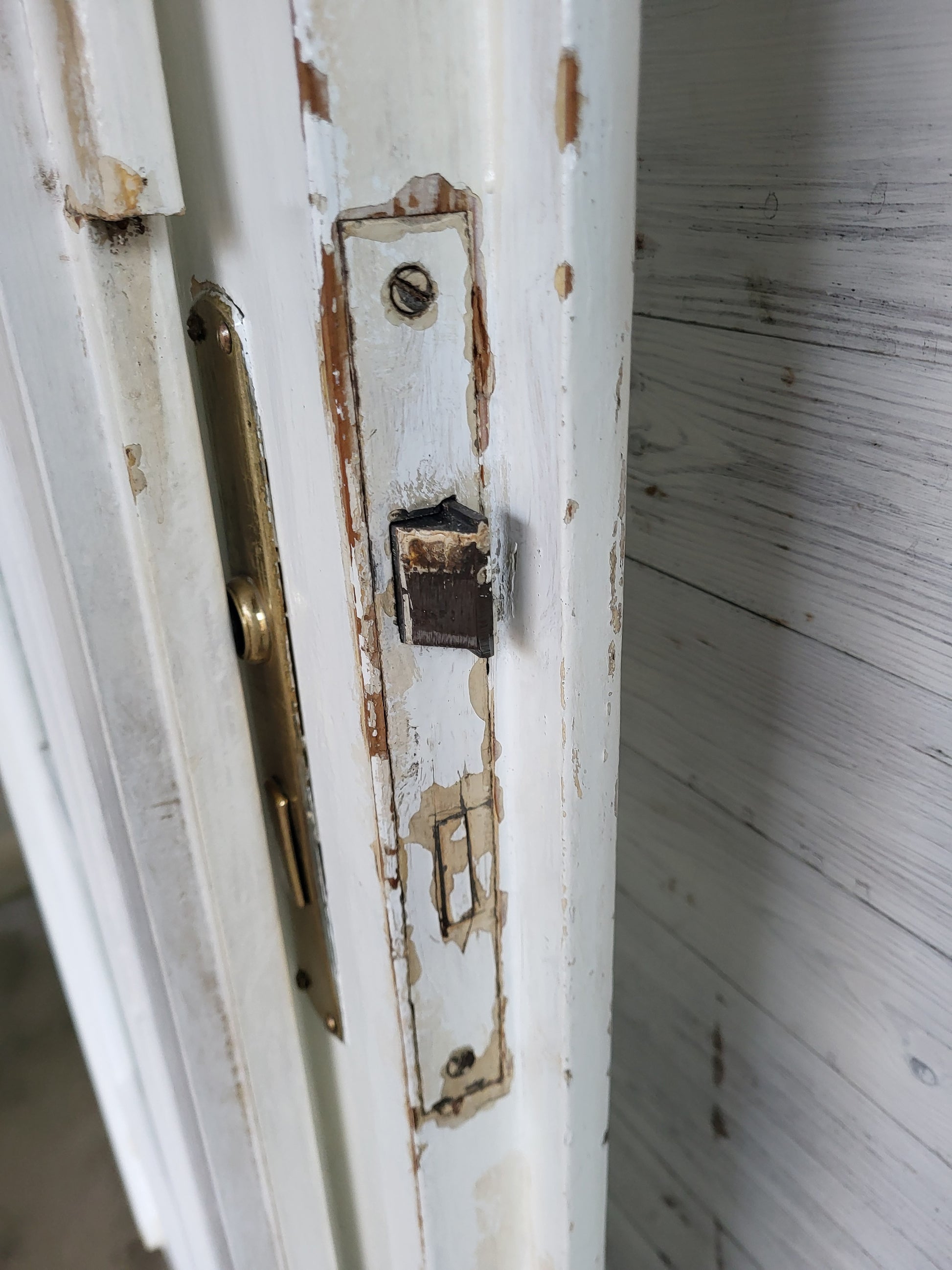 - 2 x vorh., jeweils alles orig. und komplett, massive Türflügel, Innenrahmen und 2 x Türblende- alles in einem sehr guten Zustand, orig. Türbeschläge, Einsteckschlösser + innenliegende Feststellriegel - KOMPLETTE ANLAGEN